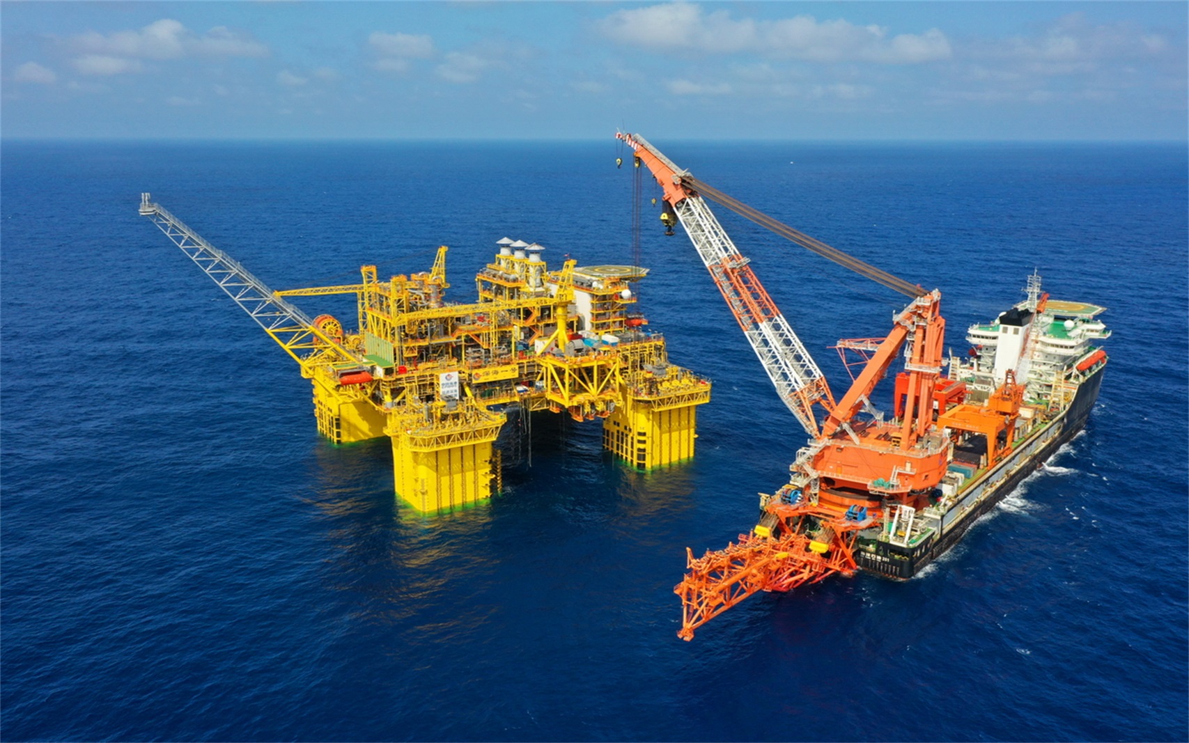 項目名稱:“深海一號”大氣田開發(fā)工程項目(陵水17-2開發(fā)工程項目) 項目完工時間:2021年6月 項目簡介:“深海一號”大氣田是中國首個1500米超深水大氣田,位于海南三亞東南約150km南海西部海域,水深1220-1560m。設(shè)計產(chǎn)能天然氣32.5億方/年,外輸商品氣30億方/年。項目主要包括1座半潛式生產(chǎn)儲油平臺、1套水下生產(chǎn)系統(tǒng)、17套海底管線、11條臍帶纜等設(shè)施的設(shè)計、建造、安裝及鋪設(shè)工作。 項目亮點: 項目核心設(shè)施“深海一號能源站”是全球首座十萬噸級深水半潛式生產(chǎn)儲油平臺,應(yīng)用3項國際首例和13項國內(nèi)首例技術(shù),采用“30年不回塢”的超高標準,設(shè)計疲勞壽命達150年,可抵御百年一遇的超強臺風(fēng)。 在新冠肺炎疫情嚴重影響下,海油工程僅用21個月就完成“深海一號能源站”建造,總裝搭載和精度控制達到世界先進水平,填補多項1500米深水施工空白,創(chuàng)造了令世界矚目的“中國速度”“中國精度”和“中國深度”。